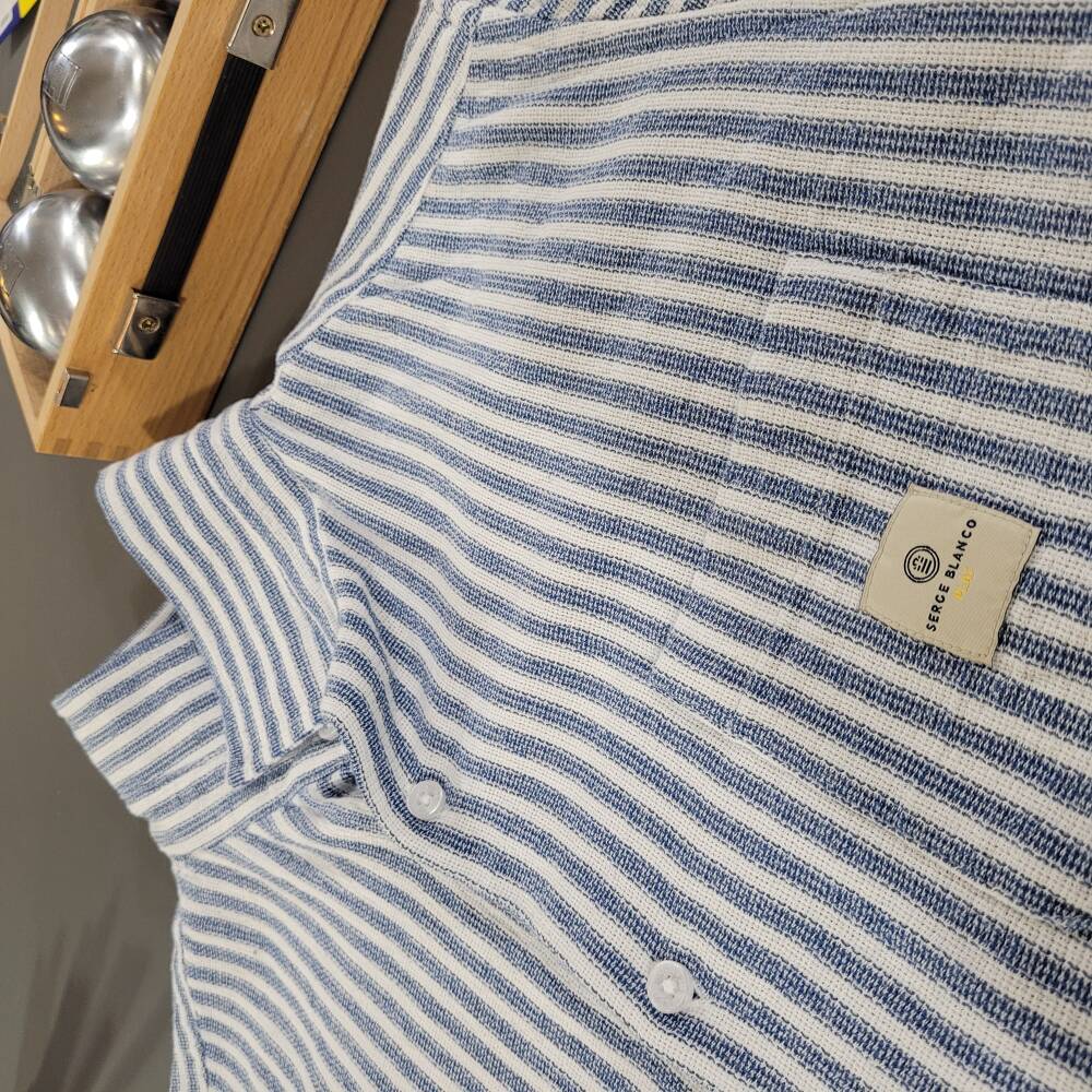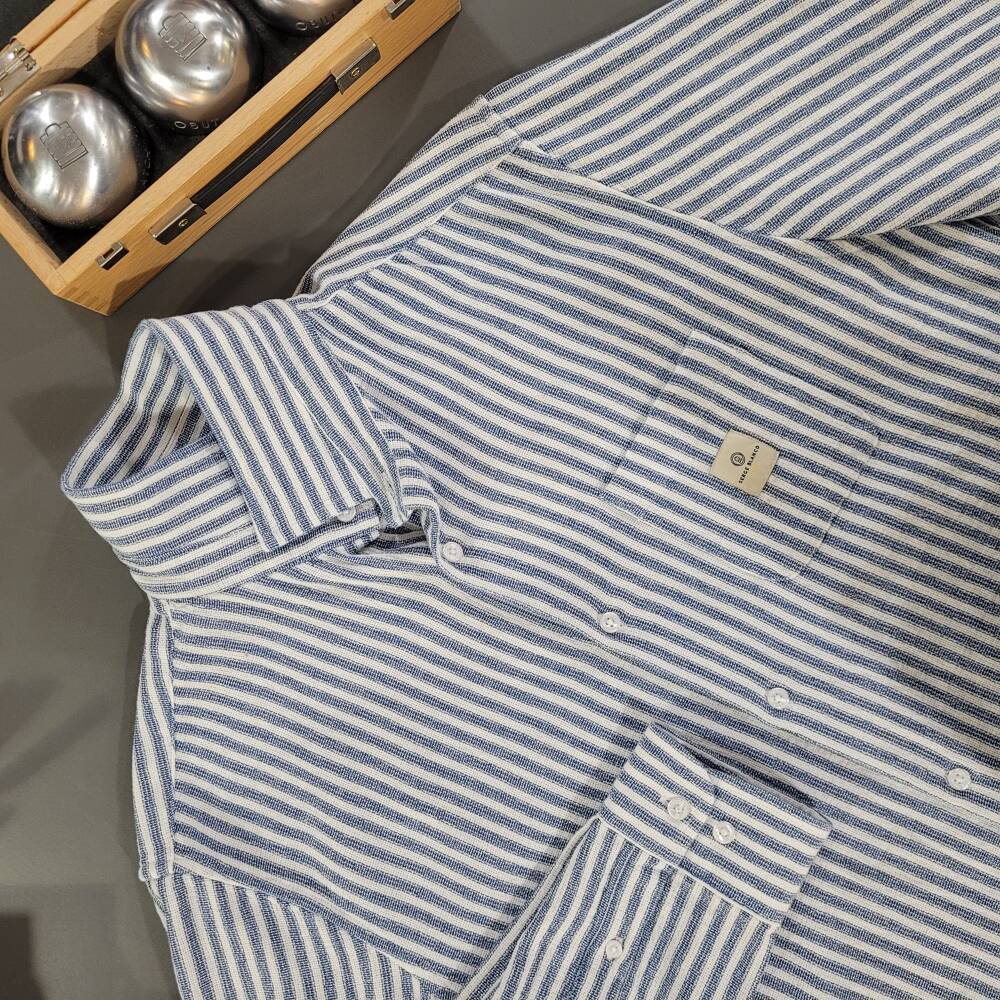 Chemise au tissu à rayures tissées offrant texture et relief subtil, doux et respirant, idéal pour un usage quotidien.