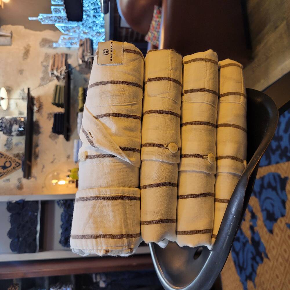 Chemise au tissu rayé, à larges bandes verticales pour un effet visuel moderne, doux et respirant pour un confort naturel