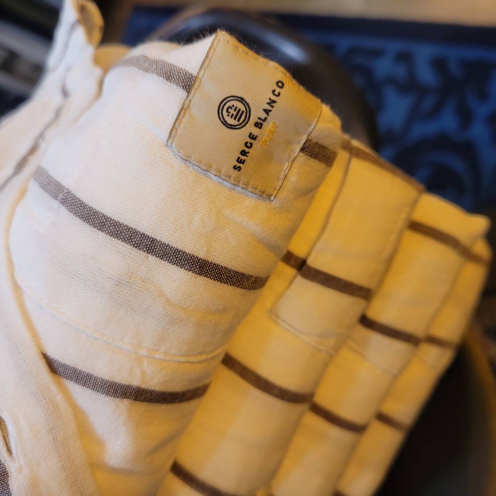 Chemise au tissu rayé, à larges bandes verticales pour un effet visuel moderne, doux et respirant pour un confort naturel